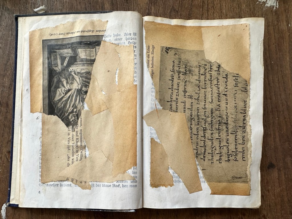 I specifically seek out old, discarded books, their pages already carrying history, already marked with time and use.